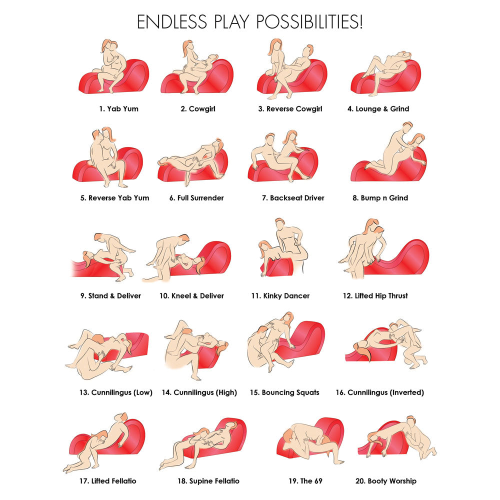 Re-imagine sex and play with this curved, chaise lounge couch! The velvety cover is made of polyester and gently caresses your skin as you ride on top of it. Recline back and let your partner part your legs and give you some attention with their mouth, lips, tongue and hands. Turn over and lean your arms and chest against the upper part of the couch while you kneel against the dip in the couch and do it Doggy Style! You can ride them without having to practice a bunch of yoga stretches when you're supported up off the ground and able to straddle them! Enhance every position and get to your favourite angle that hits that sweet spot with this sexy, plush couch!